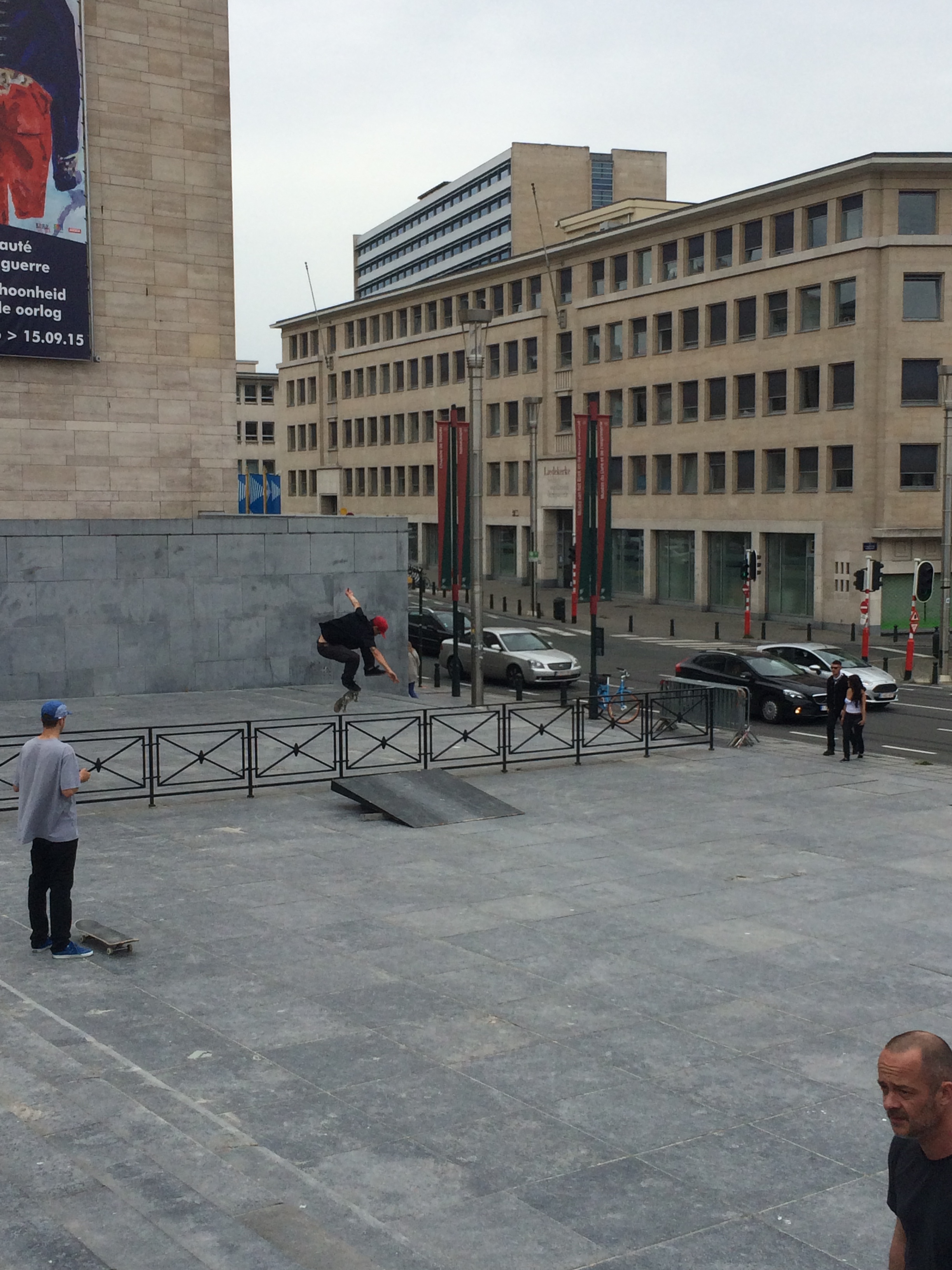 Some skateboarders were making professional-grade videos and photos of their high-level tricks near the stairway and gardens (at the Mont des Arts Garden), and I stopped to watch them. Thinking of Johnny Utah here. (Check out his travel site here.)