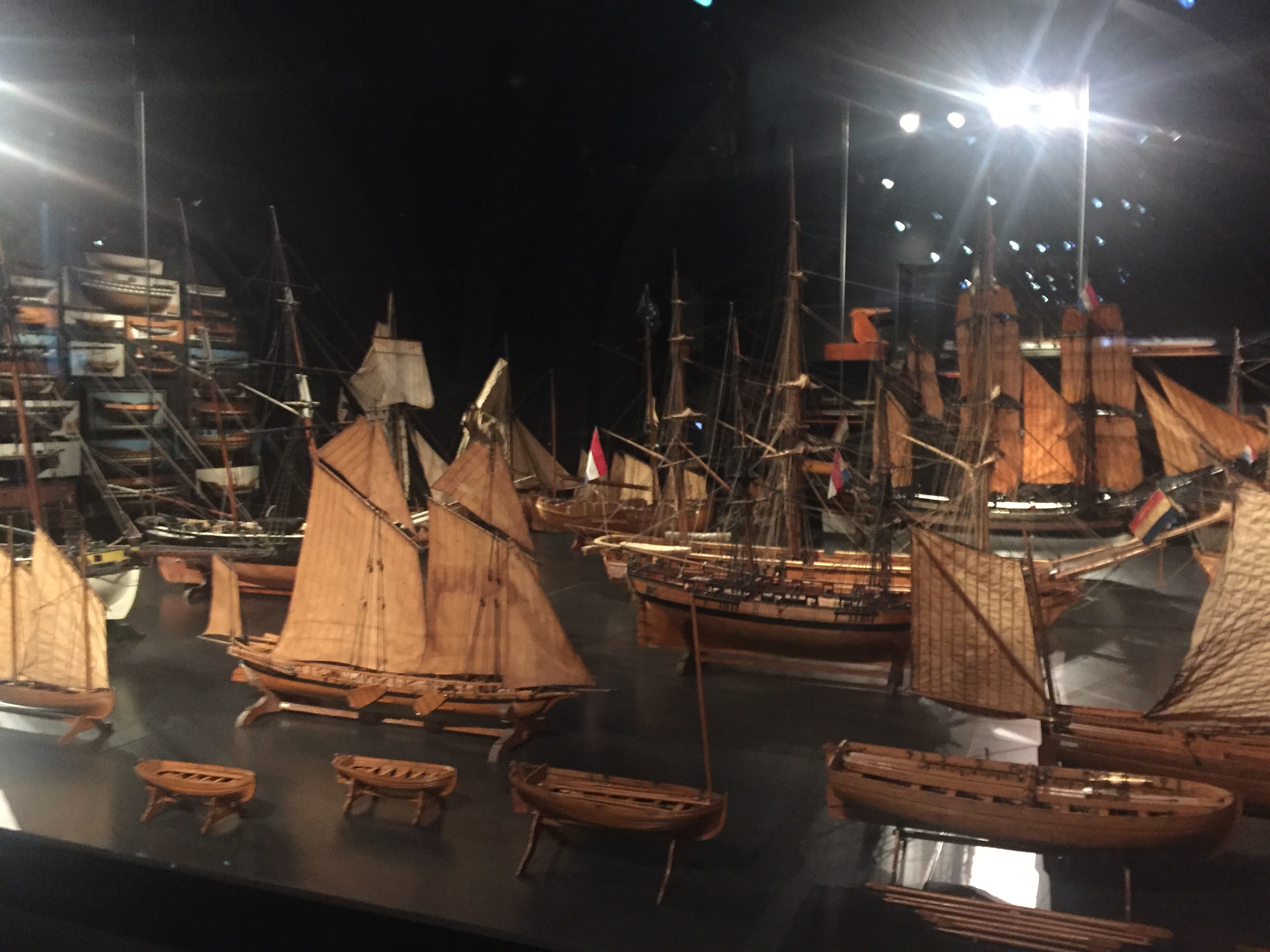 Today’s was my second trip to the Rijksmuseum – my first was in July 2015. And again, my favorite place in the museum wasn’t the City Watch room or the Waterloo room, though those were neato, of course. My favorite rooms continue to be any rooms in which model ships are displayed. And there are several places in this Dutch museum featuring giant model ships quite prominently. Most impressively, on floor zero, is a giant display of what must be twenty or thirty of the things.