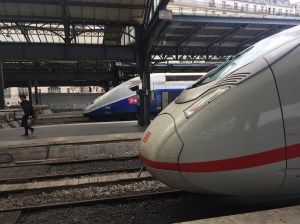 I am fascinated by trains. My Deutsche Bahn ICE (intercity-express) train clocked 320kph (about 145 mph) after entering France, and that is an intense speed on the ground. A little scary for the uninitiated (me, for instance). If we had such options in the United States, where trains are less comfortable, less well apportioned (the wifi is not so fast, reliable – and isn’t always even available – for instance) than they are in Central and Western Europe.