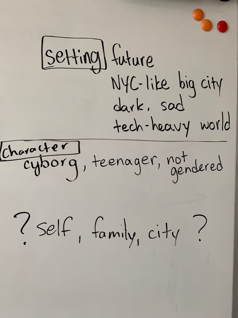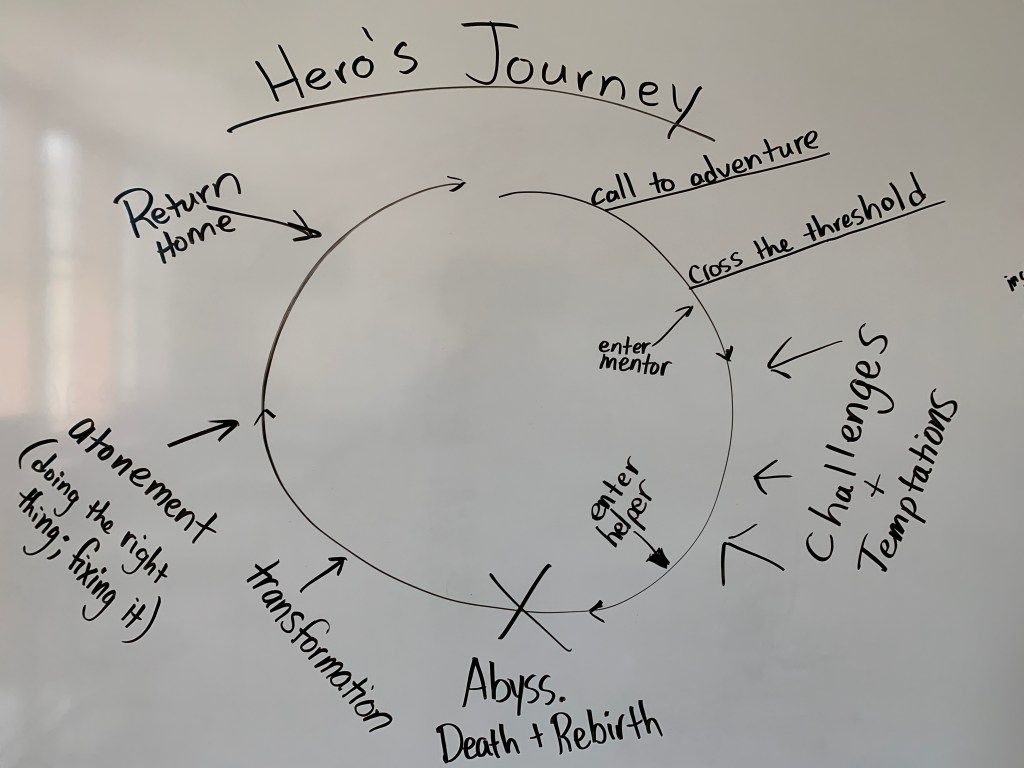So we started with the three-act structure. We talked about Moana and The Hunger Games. Students learned the shape of story arcs. We talked protagonists and antagonists. We moved to the Hero’s Journey and discussed everything from the Call to Adventure and Crossing the Threshold to the Abyss, the Transformation, and the rest. I let them know that they should now be able to predict what will occur in every story they ever read or see. So as not to ruin their experiences, I helped them to think about the ingenious ways that excellent writers and other creators have ducked our expectations and told stories following similar or even identical paths have surprised and amused us. Then we began crafting our own story.