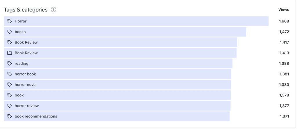 So I can’t directly measure anything I’d call “overall success” for Whisper House Press. Absent that data, I can look at how things are trending on the site, on my socials, etc. (In my last post, I mentioned “building the machine,” and this stuff all contributes to that machine.)